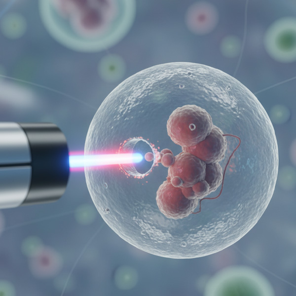 Because the laser delivers controlled bursts of energy, the process is extremely quick, safe, and consistent compared to mechanical or chemical hatching methods. The embryo remains in optimal temperature-controlled conditions throughout.