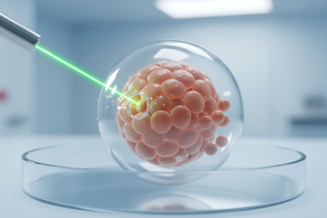 The procedure involves the use of a high-precision, non-contact infrared laser to gently thin or create an opening in the zona pellucida. The embryologist carefully targets the outer shell without touching or harming the embryo itself.